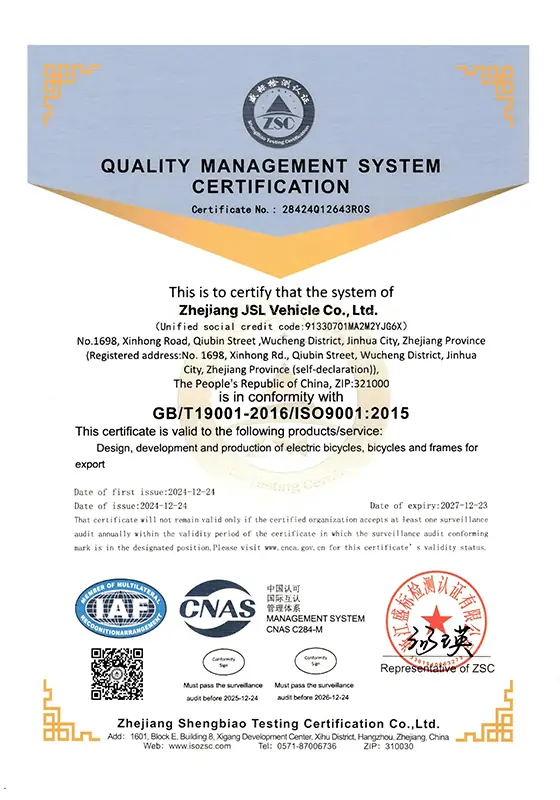 Zhejiang JSL Vehicle Co., Ltd. is a national high-tech enterprise with over 25 years of experience in the electric vehicle industry. We specialize in the design, R&D, manufacturing, and sales of electric bikes, wheelchair tractors, and mobility solutions.