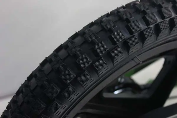 Shock-absorbing pneumatic tires ensure a smooth and stable ride on various terrains.