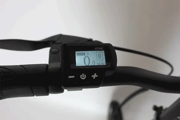 Shows speed, battery, assist level, and ride data clearly.