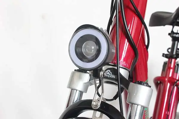 Pre-installed lights for night riding visibility and traffic safety.