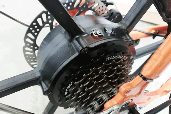 Built into the rear wheel for a quiet and streamlined appearance.