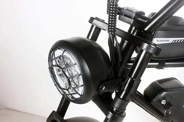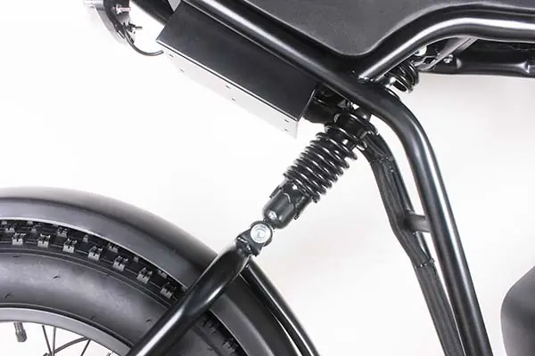 Front suspension absorbs shocks from the road, working together with rear shock to create a dual-cushioning ride experience.