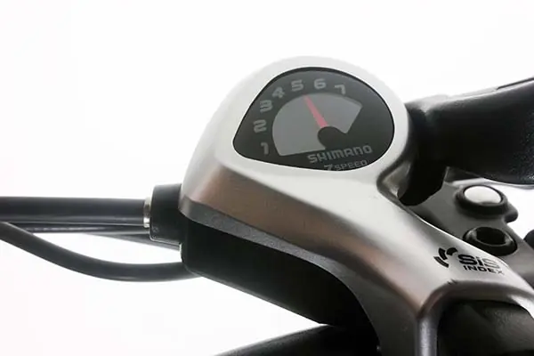 The handlebar-mounted gear shifter includes a visible gear display, allowing riders to easily check their current gear and shift more confidently while riding.