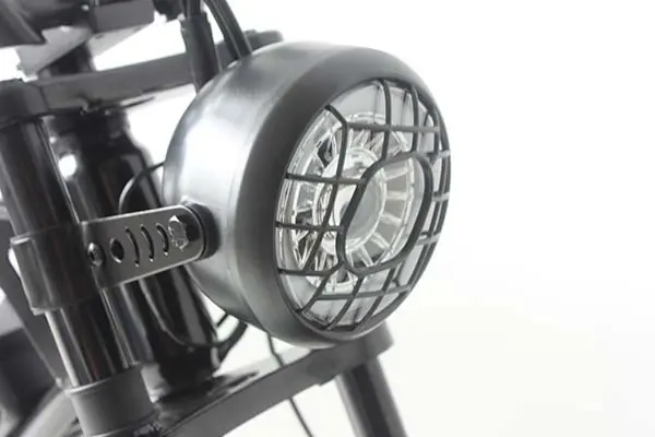 Pre-installed lights for night riding visibility and traffic safety.