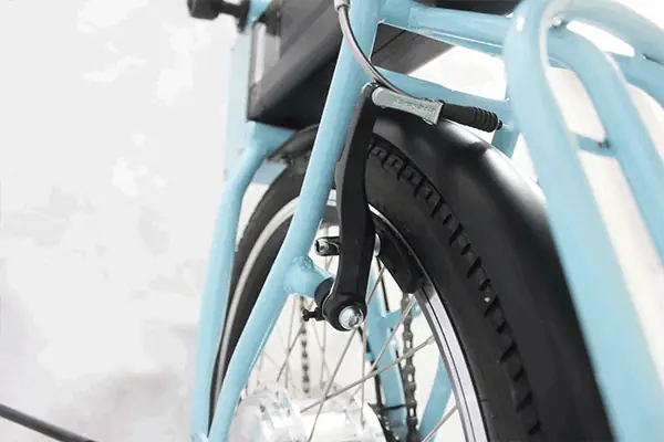 A: They’re traditional rim brakes that are lighter and cost-effective, suitable for flat urban terrain.